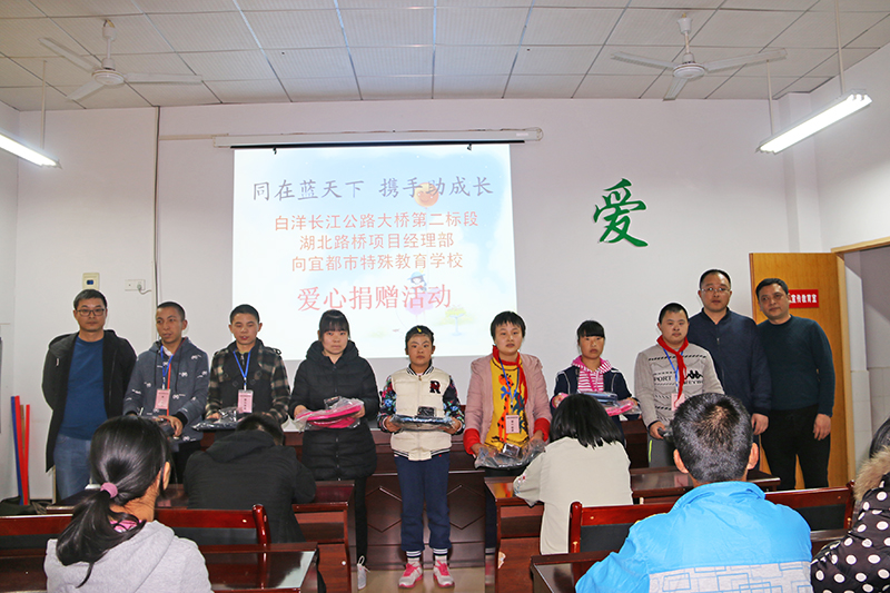 3月21日上午,正值第八屆“世界唐氏綜合征日”,路橋集團白洋長江公路大橋項目部全體黨員、工會代表組成一支“學雷鋒志愿隊”,來到宜都市特殊教育學校走訪慰問,關懷特殊群體未成年人健康成長。