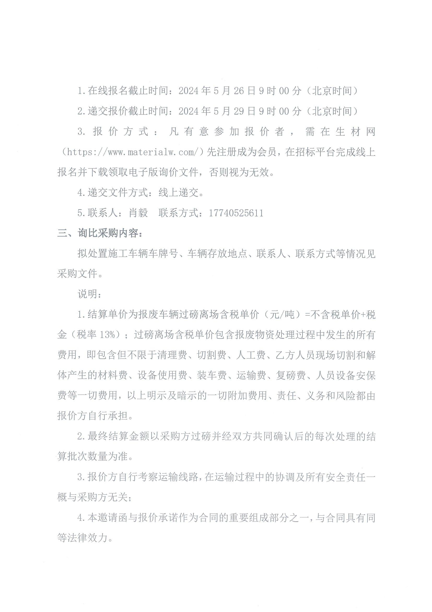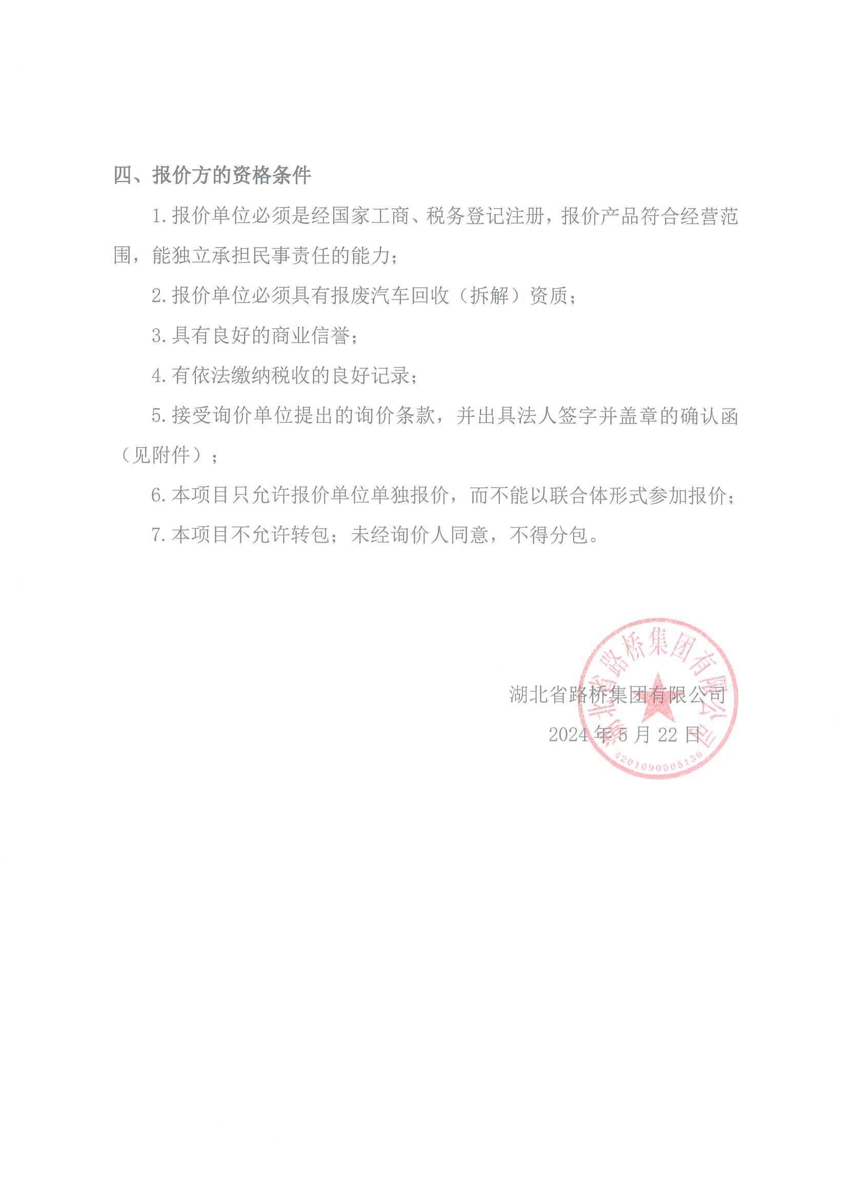 湖北省路橋集團有限公司報廢車輛處置詢比采購(第二次)公告